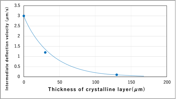 Diagram. Relationship between thickness of crystalline layer and Intermediate deflection velocity